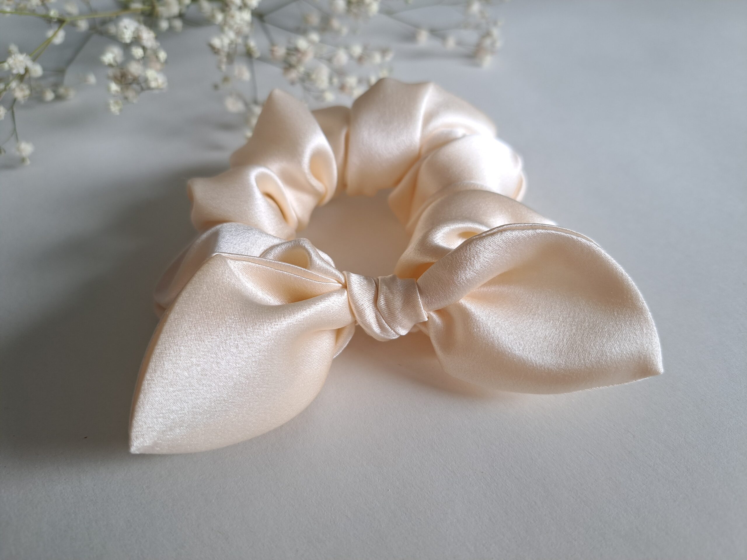 Siidist juuksekumm – kreemikasvalge M lipsuga