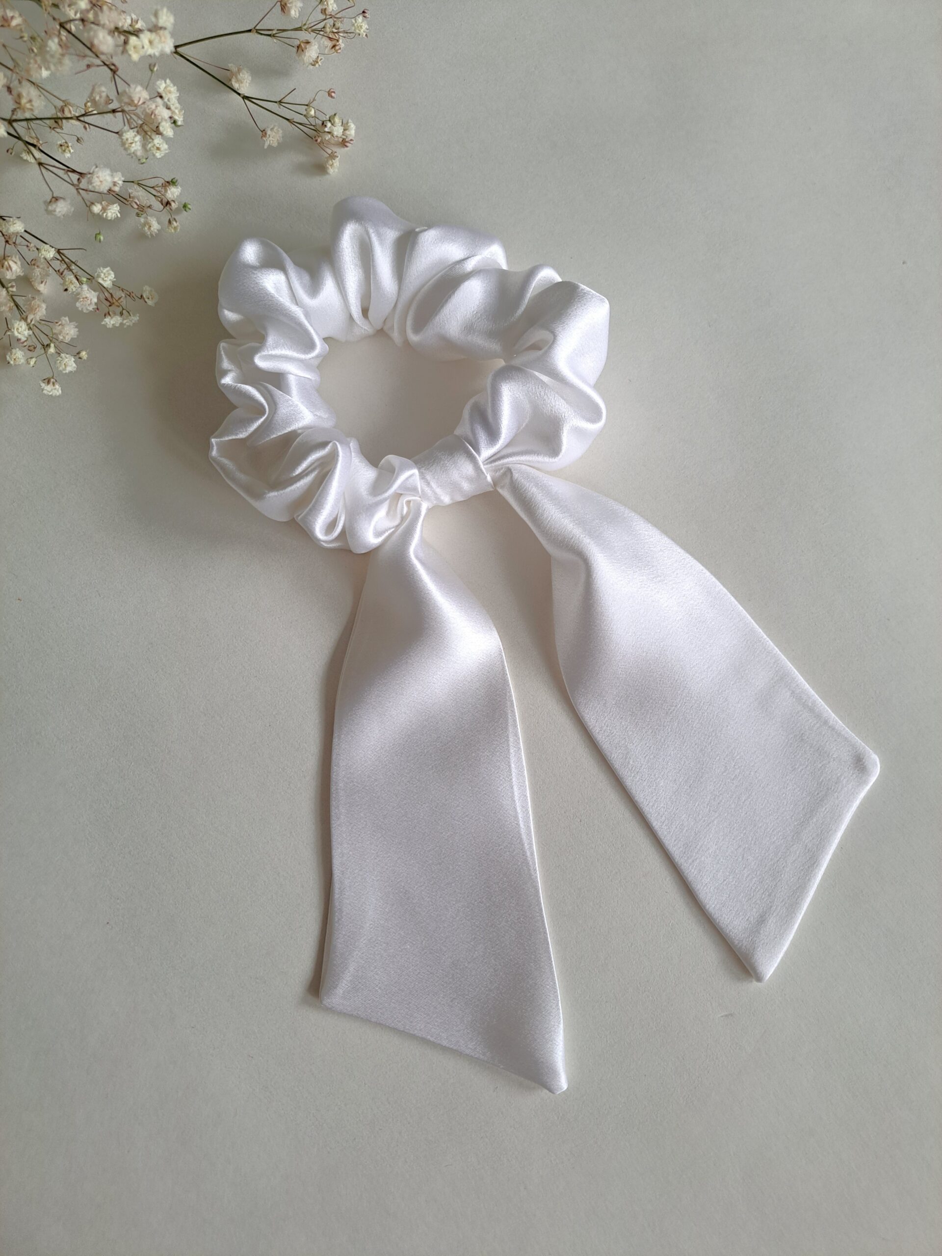 Siidist juuksekumm – valge M lehviga
